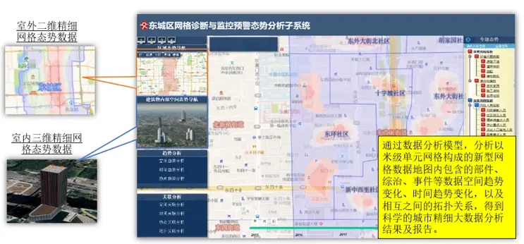 利用北斗網格碼的全球唯一性、多尺度性、高效計算性、立體性、包容性等優勢,對北京東城城市空間部件全標識與管理,推動北京東城城市網格管理實現更精細化與大數據化,使城市網格從管理網格向數據網格轉變、城市網格管理從業務驅動向數據驅動轉變,城市網格管理從室外延伸至全域空間,在保持與繼承現有城市網格服務系統及各類GIS、BIM、傾斜攝影系統的基礎上,通過高效的網格化數據重構方法,便捷提升北京東城城市網格管理的大數據分析能力。